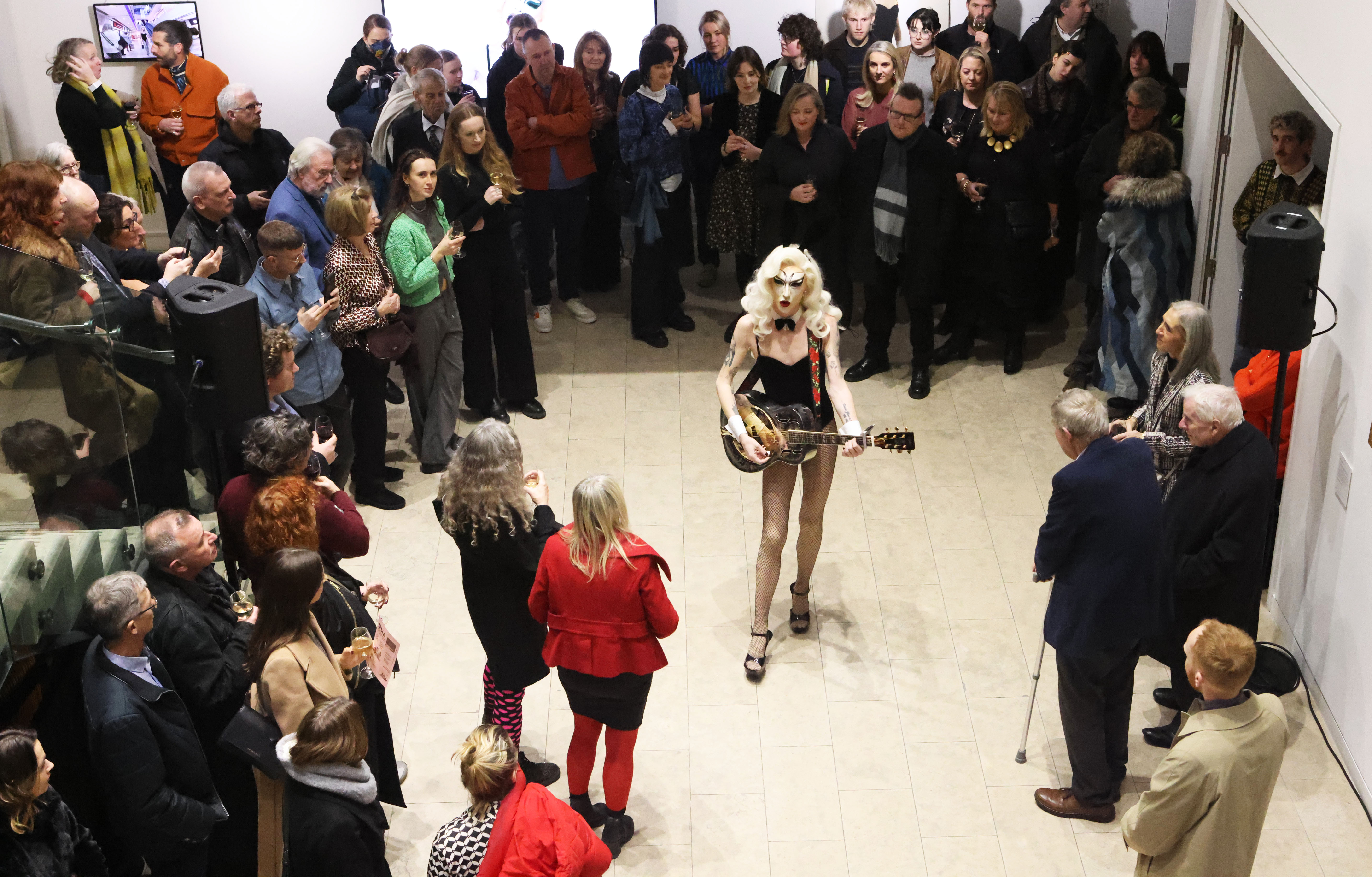 The RDS Visual Art Awards ceremony at the RHA was hosted by the Chairperson of the RDS Foundation Board, Dr Andrew Power. There were two live performances by artists Mary Madeleine McCarroll - who hosted a live drawing session of writings and symbols that were erased and redrawn on blackboards, accompanied by a Junkanoo drum soundscape - and Derry artist Cahal O’Connell as his drag persona Miss Mary Jane performed a cover of Nickelback’s ‘Rockstar’ - both are exhibiting artists as part of this annual exhibition.